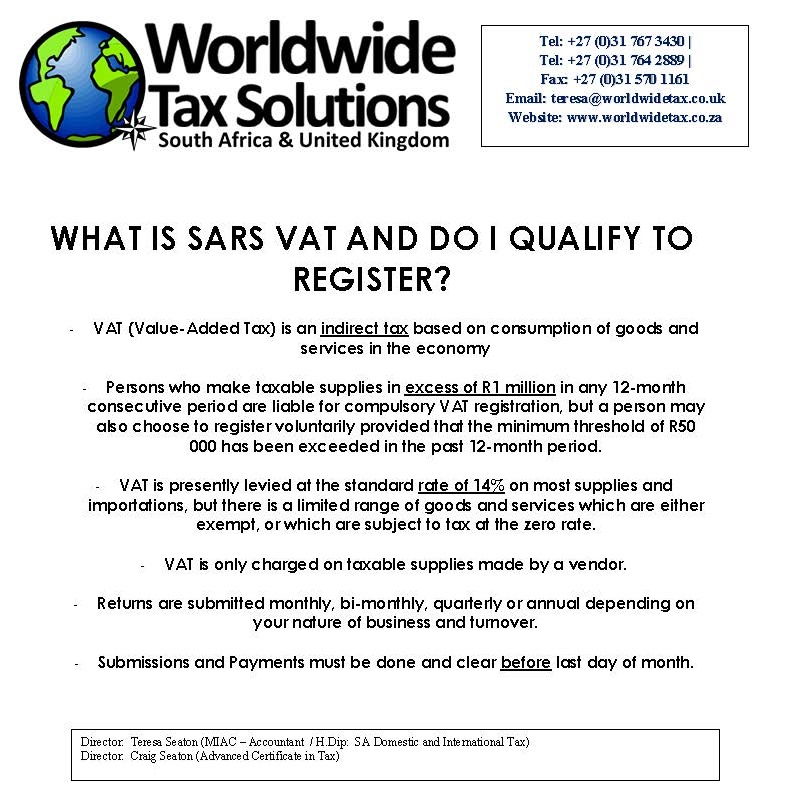26/01/2017 | WWTS | 0 Comments | Social Media Newsletters What is & do I qualify to register for SARS VAT?