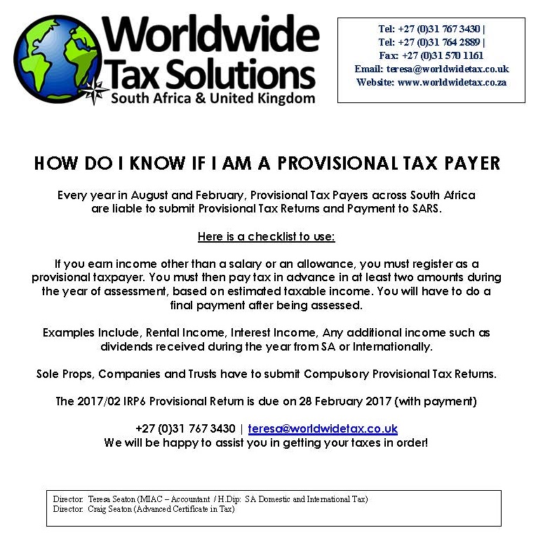 25/01/2017 | WWTS | 0 Comments | Social Media Newsletters How do you know if you are a Provisional Tax payer?