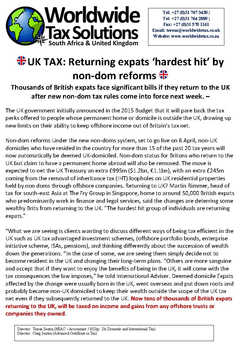 03/04/2017 | WWTS | 0 Comments | Tax Law Newsletters WORLDWIDE TAX SOLUTIONS NEWSLETTER 17 (03-APRIL-2017) – UK TAX
