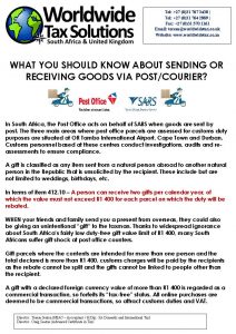05/04/2017 | WWTS | 0 Comments | Social Media Newsletters What you should know about sending or receiving gifts via post or courier.