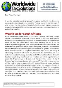 26/04/2017 | WWTS | 0 Comments | Tax Law Newsletters WORLDWIDE TAX SOLUTIONS NEWSLETTER 20 (26-APRIL-2017) – WEALTH TAX