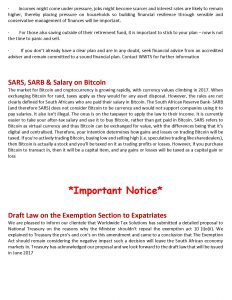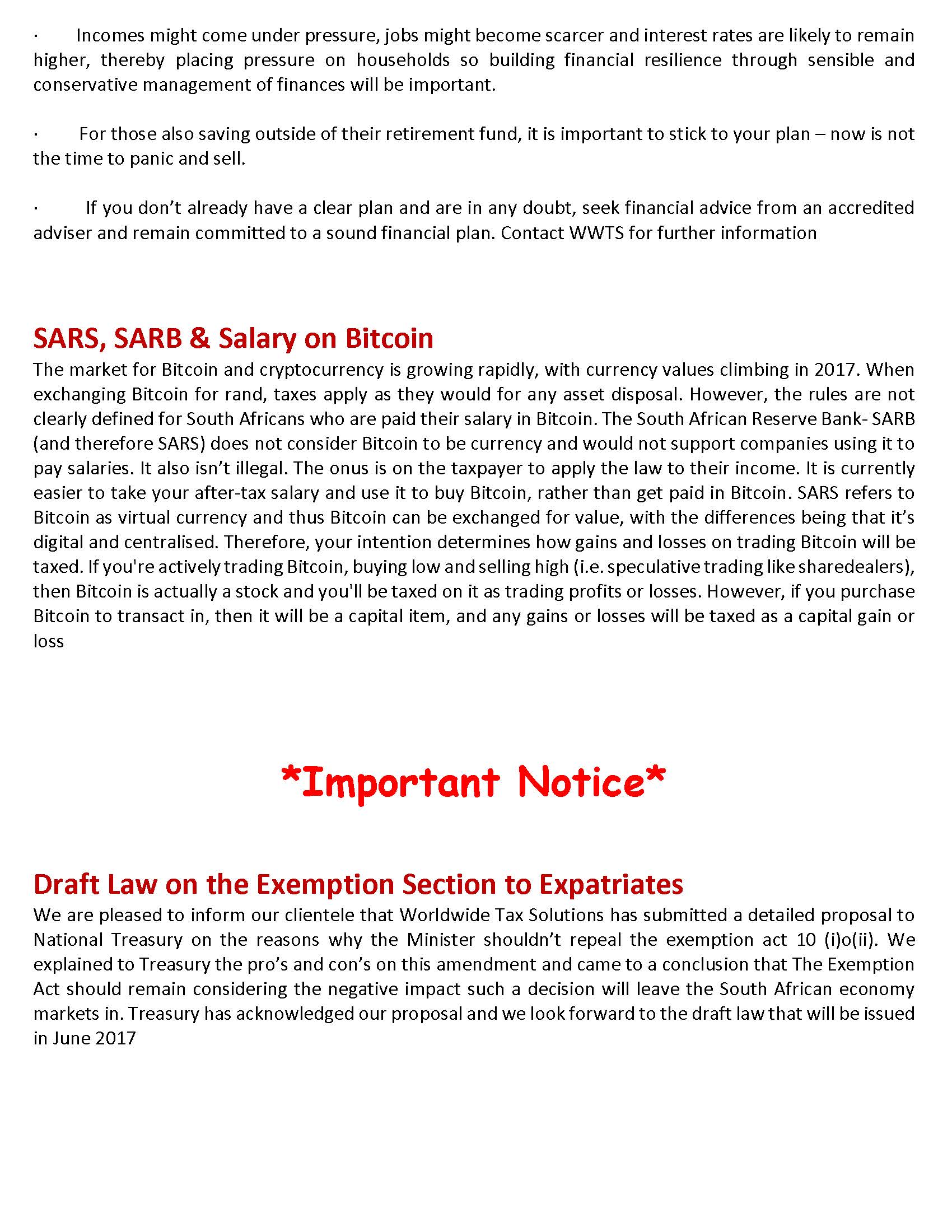 30/05/2017 | WWTS | 0 Comments | Tax Law Newsletters WORLDWIDE TAX SOLUTIONS NEWSLETTER 26 (30 May 2017) PROVISIONAL TAX ON COMPANIES & JUNK STATUS ON RA’S-BITCOIN