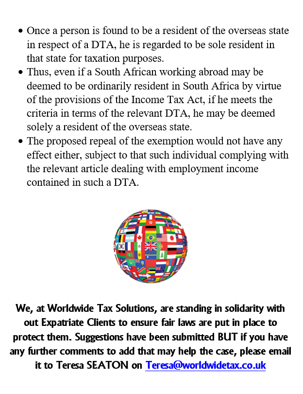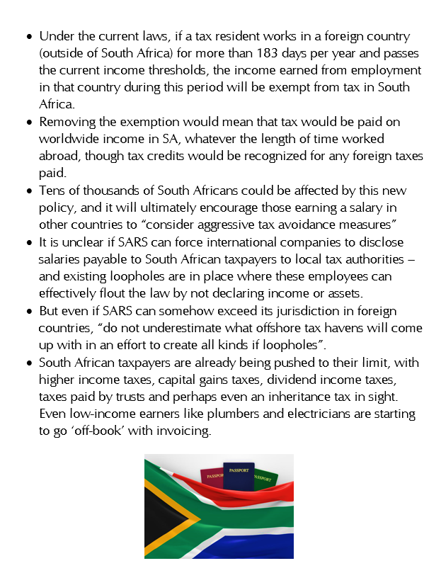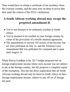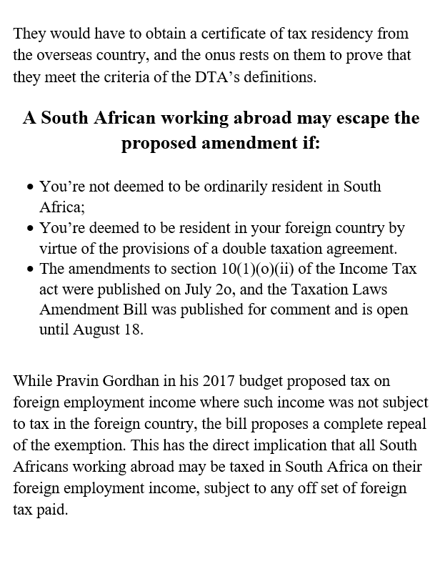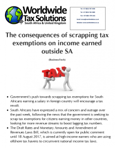 27/07/2017 | WWTS | 0 Comments | Social Media Newsletters The consequences of scrapping tax exemptions on income earned outside SA