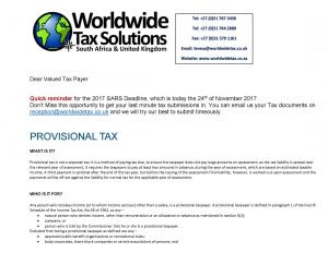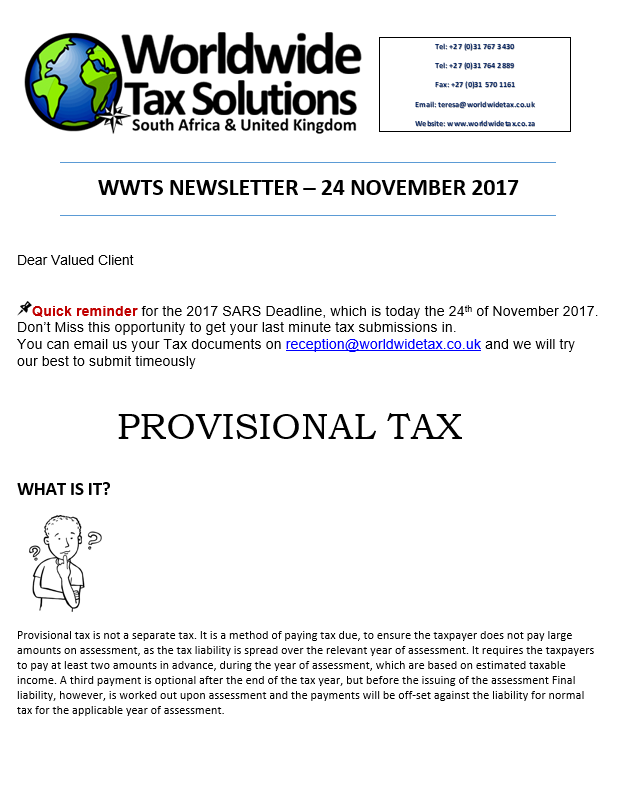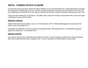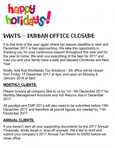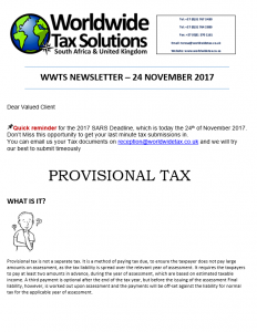 24/11/2017 | WWTS | 0 Comments | Social Media Newsletters WWTS NEWSLETTER HIGHLIGHTING PROVISIONAL TAX AND OFFICE HOLIDAY CLOSURE