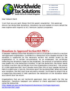 28/11/2017 | WWTS | 0 Comments | Tax Law Newsletters WORLDWIDE TAX SOLUTIONS NEWSLETTER 39 (28 Nov 2017) – DONATIONS AND VCC