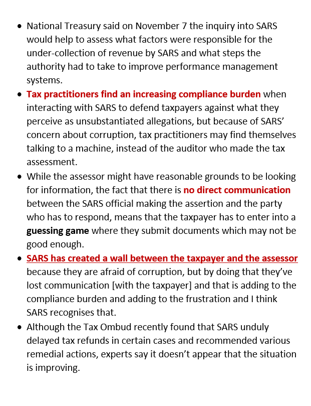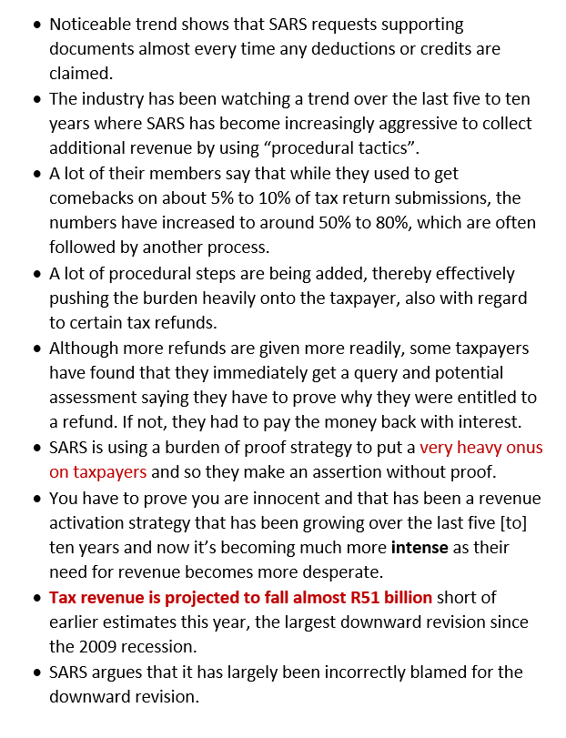 SARS USING PROCEDURAL TACTICS TO COLLECT REVENUE