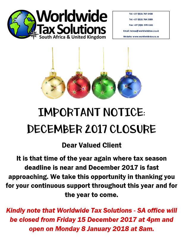 Worldwide Tax Solutions Newsletter – Smart Holiday Savings & Tax-Savvy Tips for South Africans
