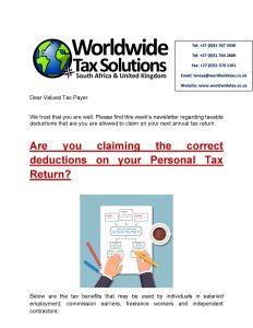 17/05/2018 | WWTS | 0 Comments | Tax Law Newsletters WORLDWIDE TAX SOLUTIONS NEWSLETTER 56 (17 May 2018) – Tax Tips