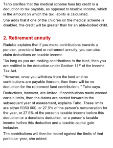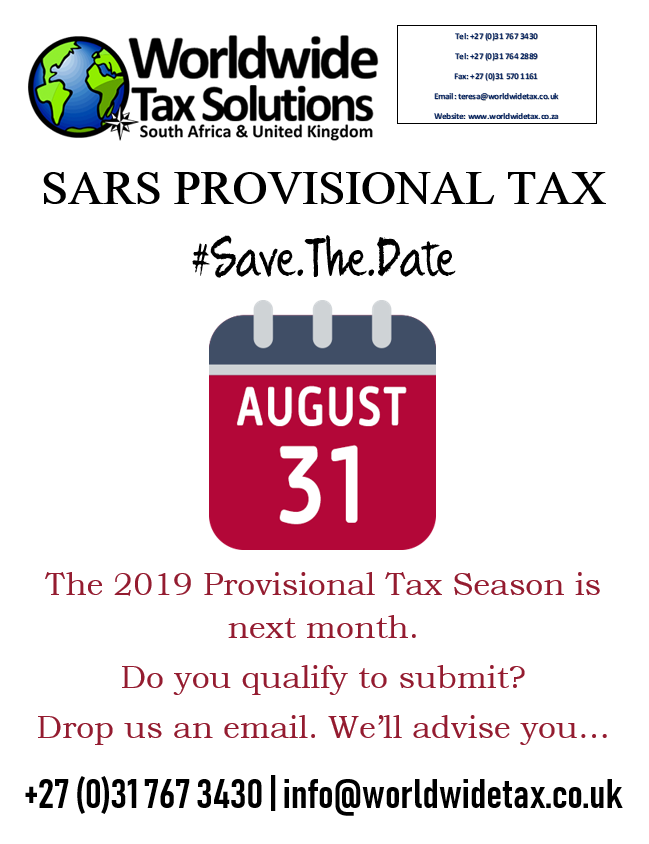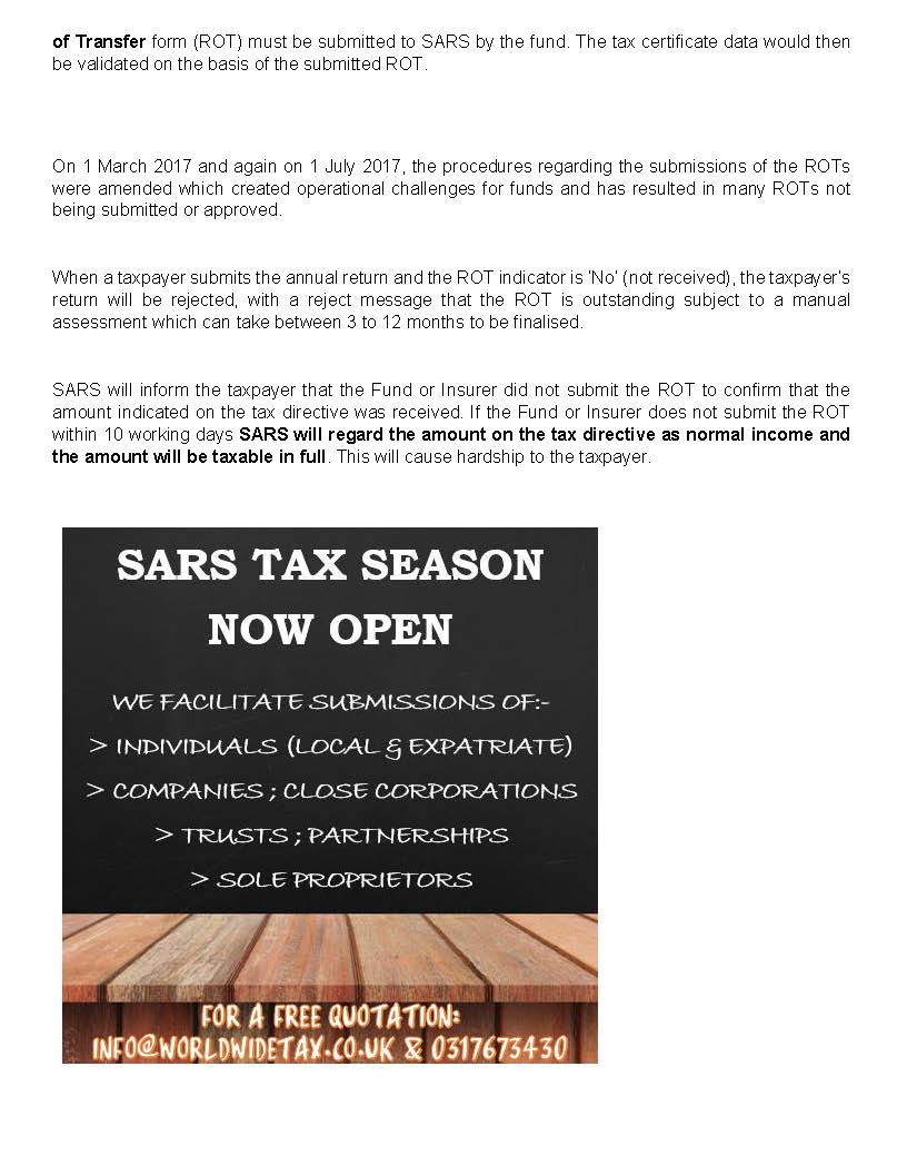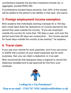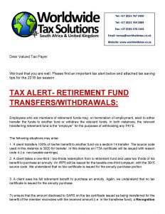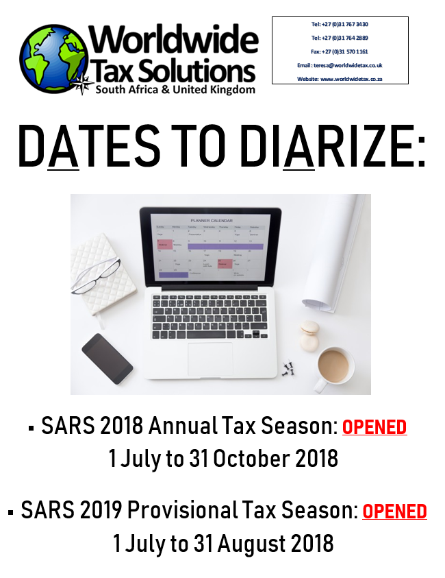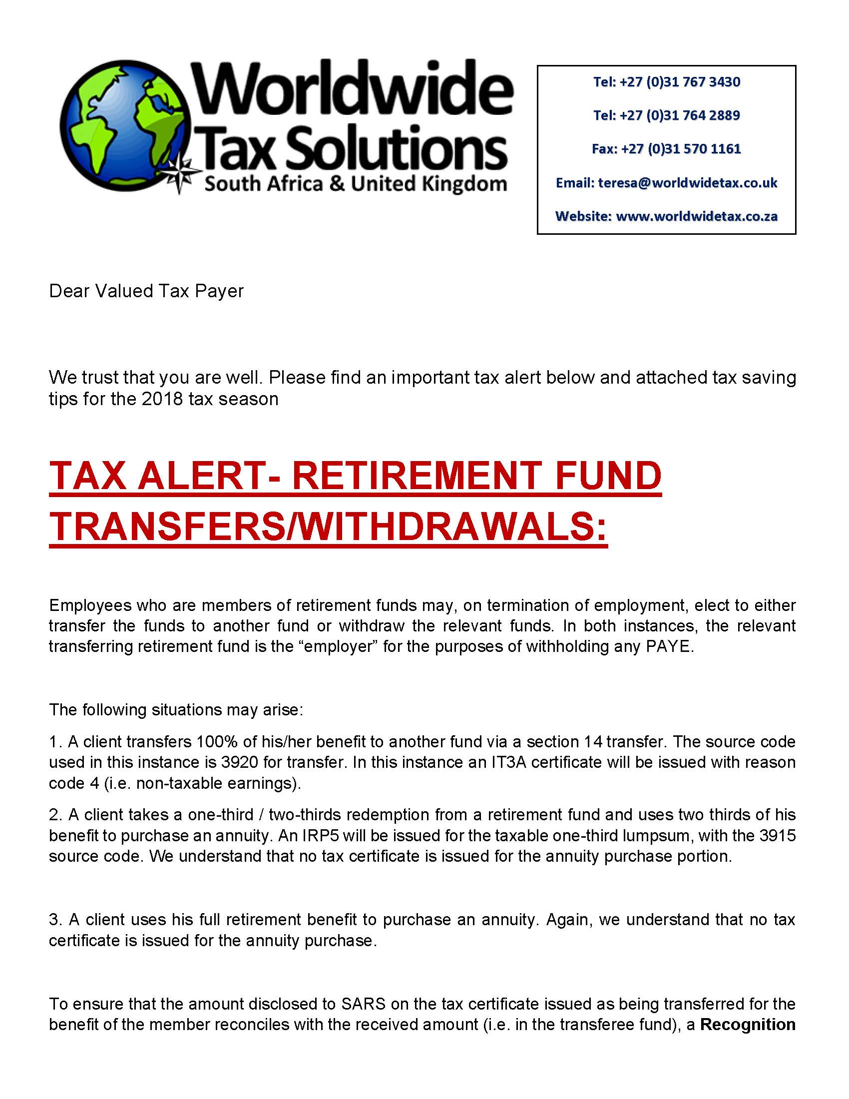 16/07/2018 | WWTS | 0 Comments | Tax Law Newsletters WORLDWIDE TAX SOLUTIONS NEWSLETTER 64 (16 July 2018) – TAX ALERT- RETIREMENT FUNDS & 2018 TAX SAVING TIPS