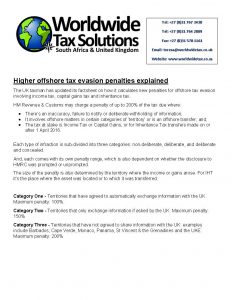 04/07/2018 | WWTS | 0 Comments | Tax Law Newsletters WORLDWIDE TAX SOLUTIONS NEWSLETTER 63 (4 July 2018) – UK Higher offshore tax evasion penalties explained