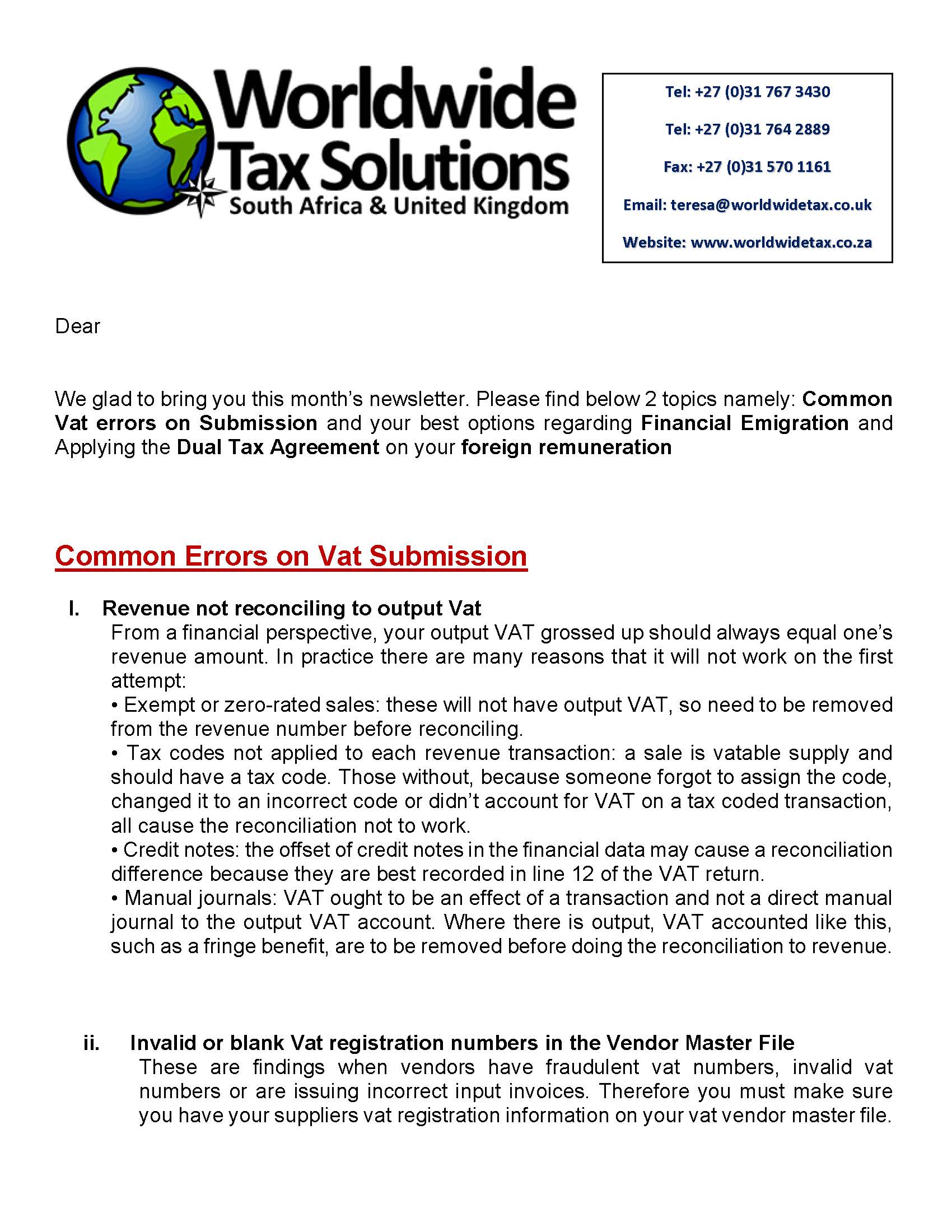 13/09/2018 | WWTS | 0 Comments | Tax Law Newsletters WORLDWIDE TAX SOLUTIONS NEWSLETTER 72 (13 September 2018) – COMMON VAT ERRORS & FINANCIAL EMIGRATIONDTA APPLICATION