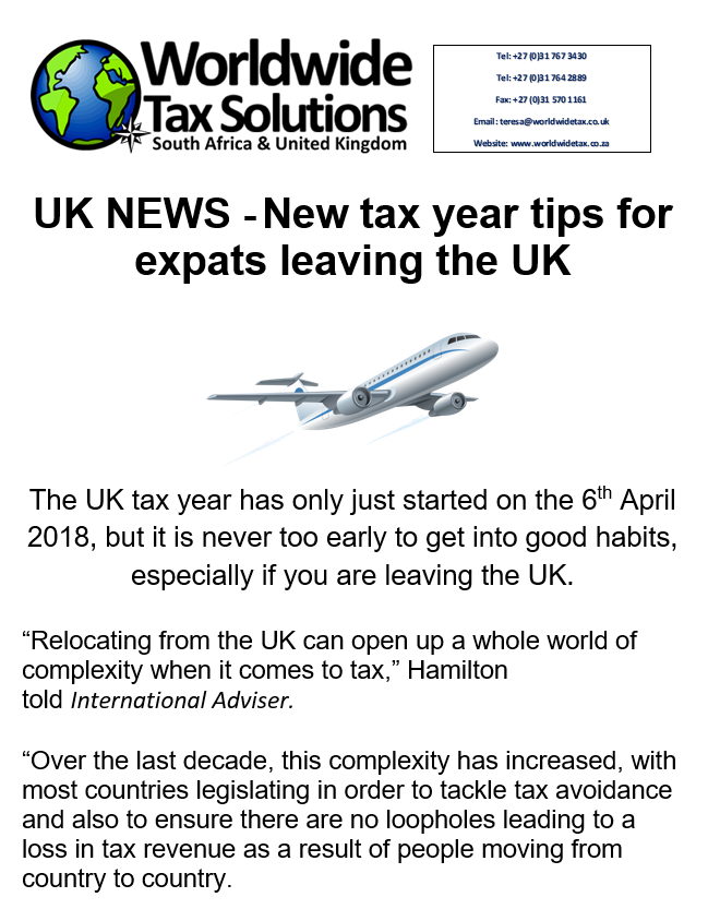 11/04/2018 | WWTS | 0 Comments | Tax Law Newsletters WORLDWIDE TAX SOLUTIONS NEWSLETTER 51 (11 April 2018) – UK News – New Tax year tips for Expats leaving the UK