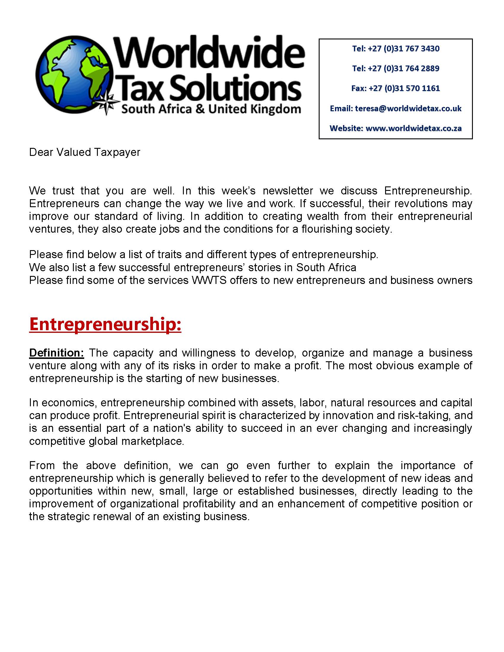 12/04/2018 | WWTS | 0 Comments | Tax Law Newsletters WORLDWIDE TAX SOLUTIONS NEWSLETTER 52 (12 April 2018) – ENTREPRENEURSHIP