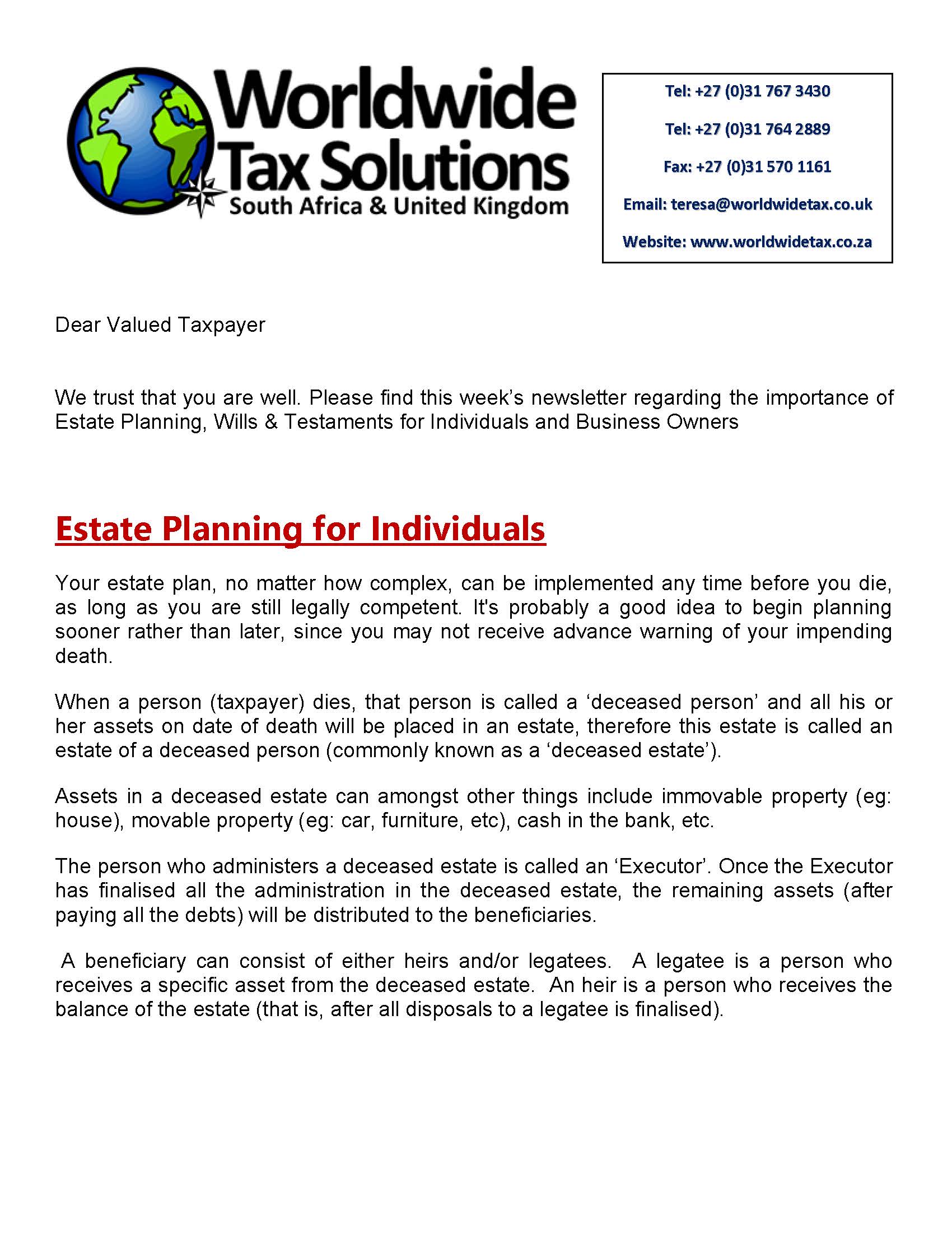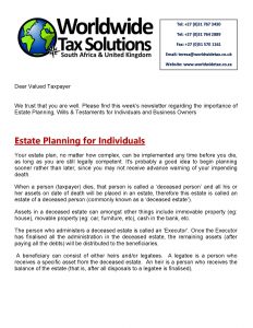 12/03/2018 | WWTS | 0 Comments | Tax Law Newsletters WORLDWIDE TAX SOLUTIONS NEWSLETTER 48 (12 Mar 2018) – WILLS TESTAMENTS AND ESTATE PLANNING
