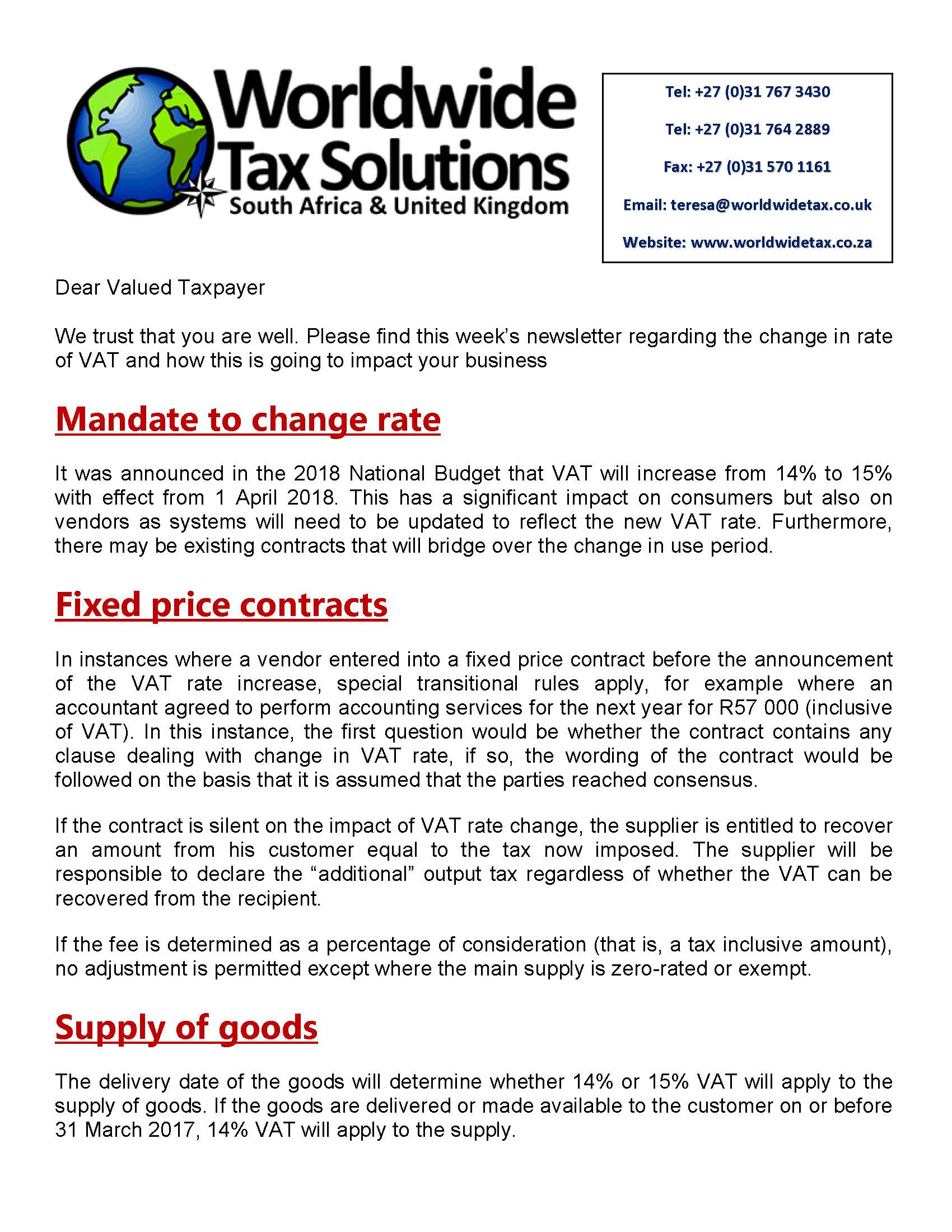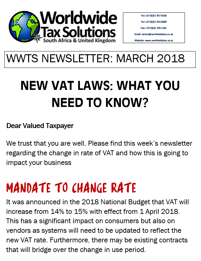 05/03/2018 | WWTS | 0 Comments | Tax Law Newsletters WORLDWIDE TAX SOLUTIONS NEWSLETTER 46 (5 Mar 2018) – NEW VAT LAWS
