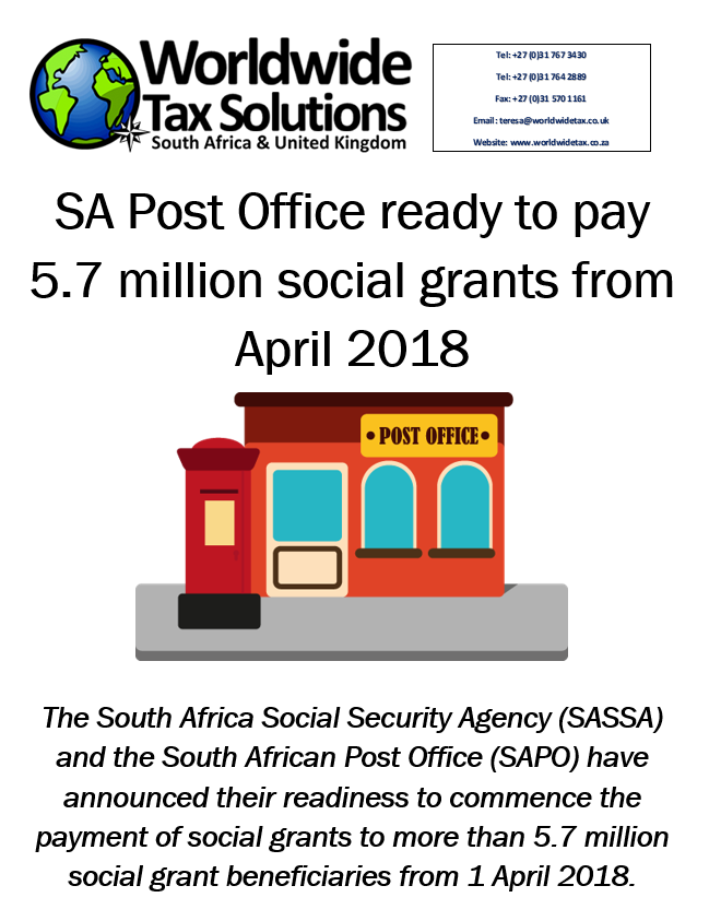 09/03/2018 | WWTS | 0 Comments | Social Media Newsletters SA Post Office ready to pay 5.7 million social grants from April