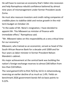 10/10/2018 | WWTS | 0 Comments | Social Media Newsletters Mboweni takes on new role at critical time for economy