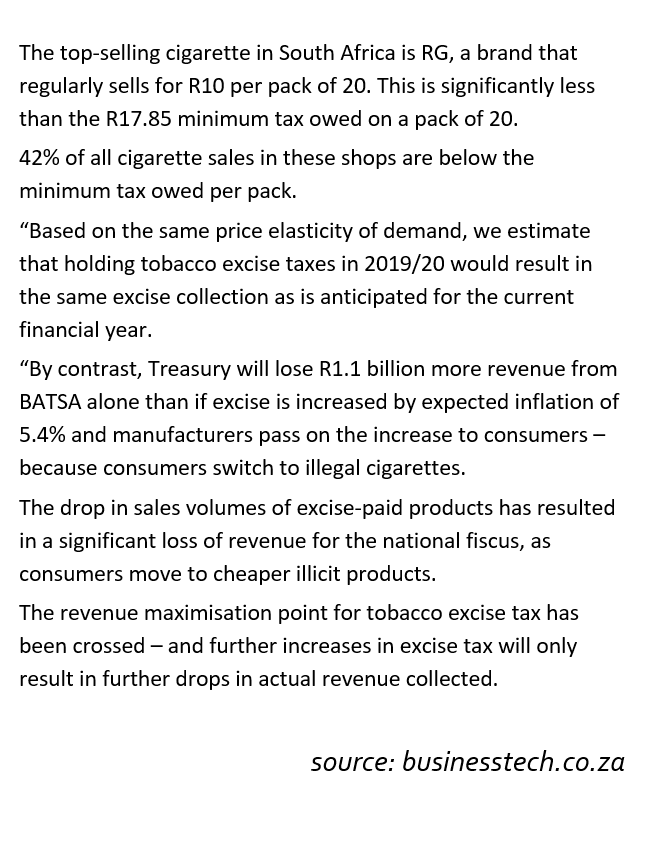 25/01/2019 | WWTS | 0 Comments | Social Media Newsletters SARS has a massive problem when it comes to taxing cigarettes in SA