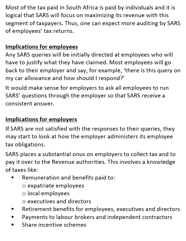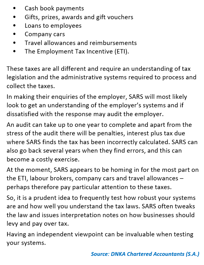BE PREPARED FOR EMPLOYEE AUDITS SARS