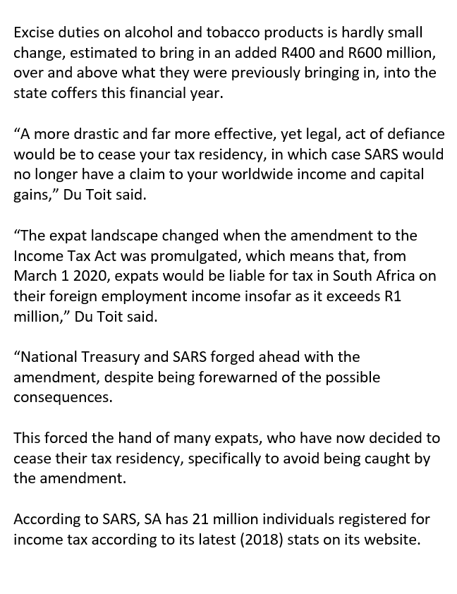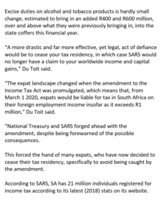 SARS holding Wealthy Taxpayers Accountable – Especially if they want to leave the Country