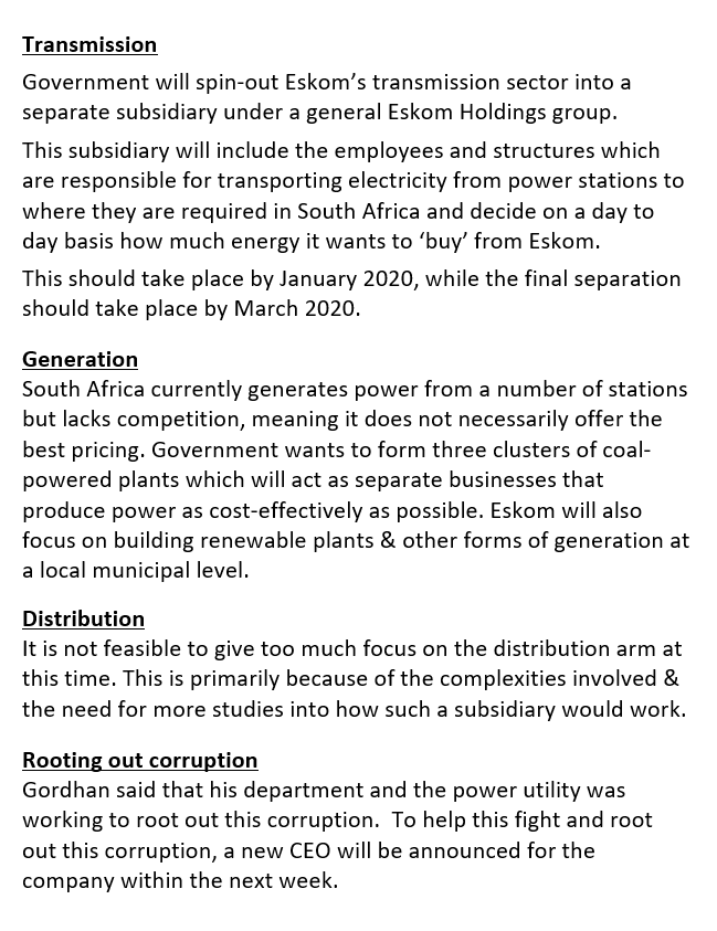 29/10/2019 | WWTS | 0 Comments | Social Media Newsletters Government’s new 6 point plan for Eskom in a nutshell
