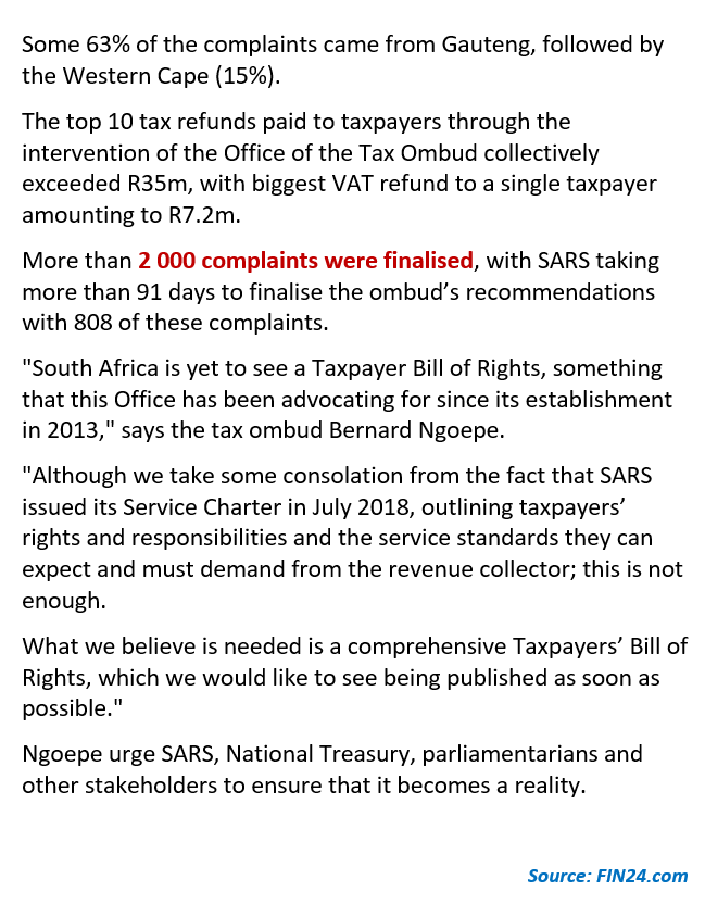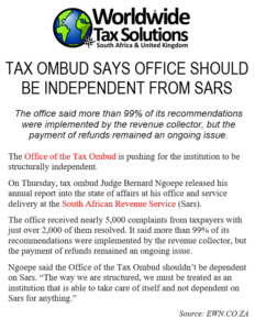 04/10/2019 | WWTS | 0 Comments | Social Media Newsletters TAX OMBUD SAYS OFFICE SHOULD BE INDEPENDENT FROM SARS