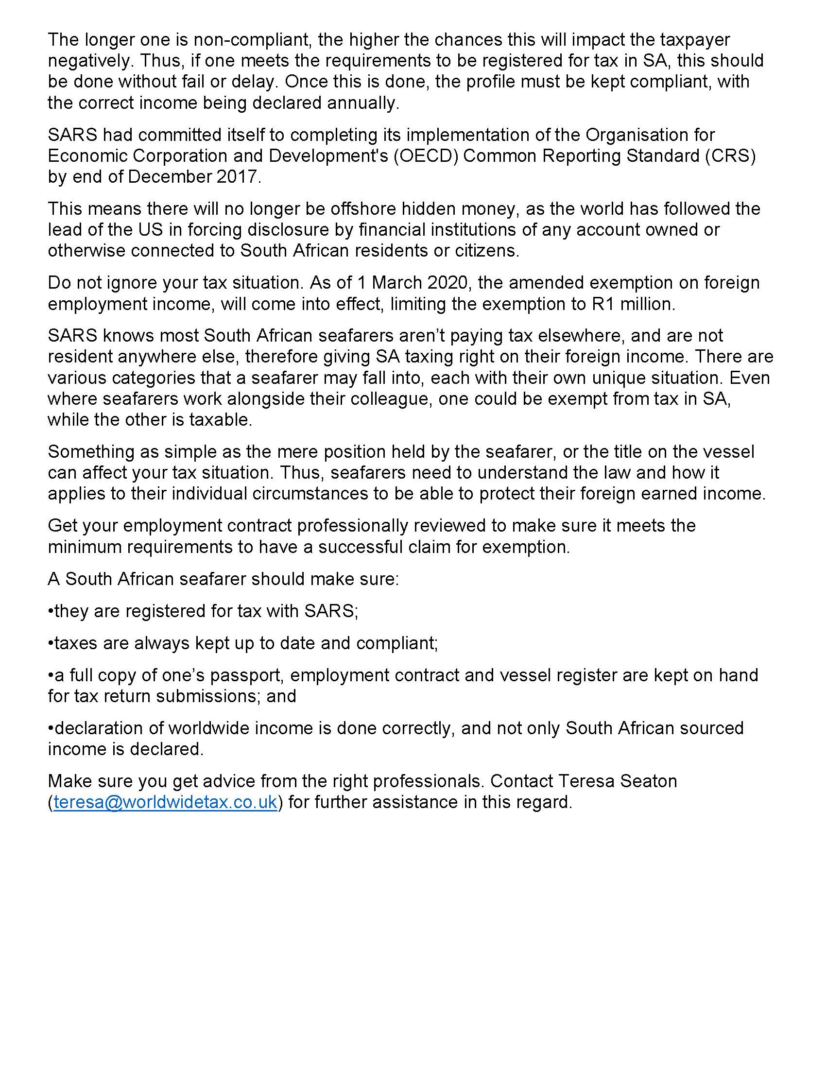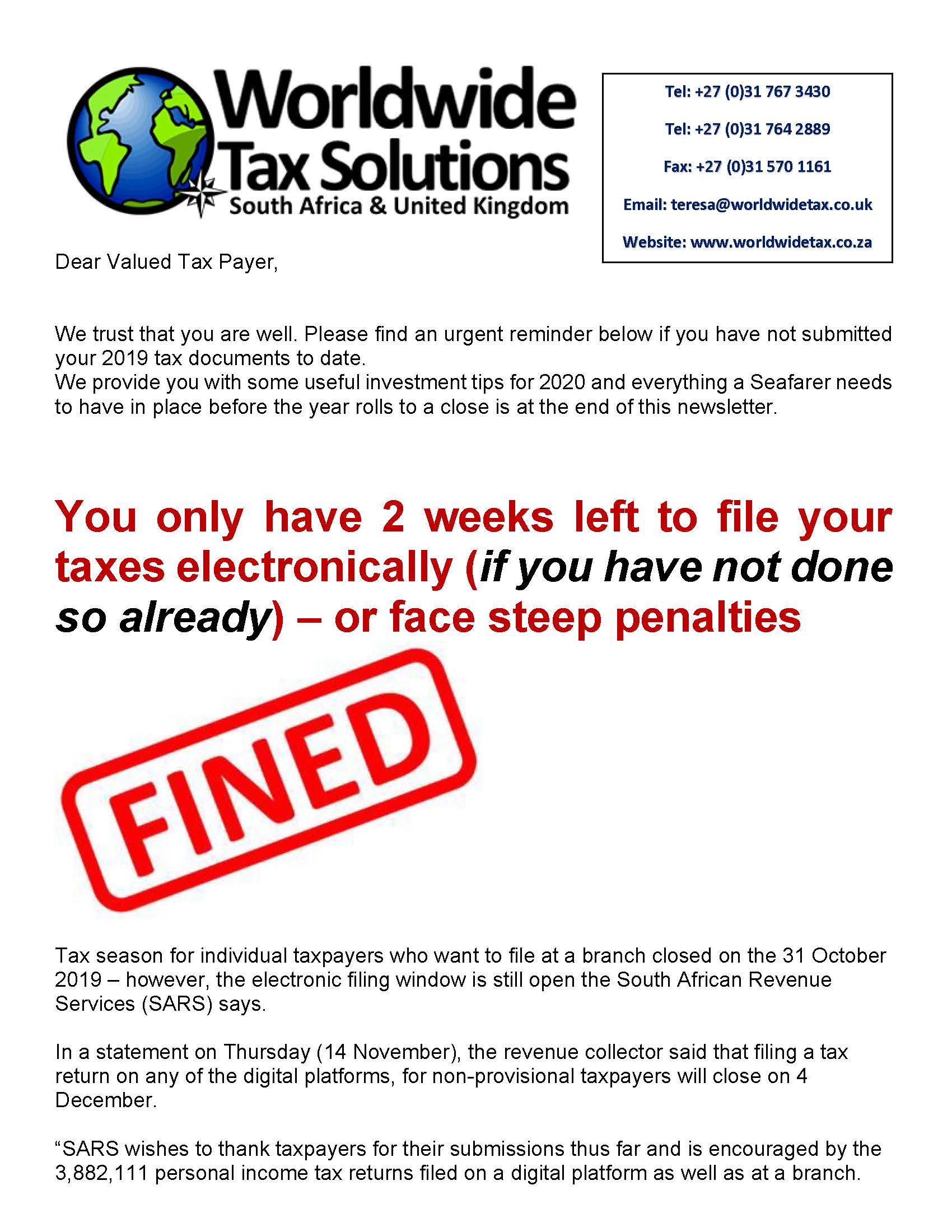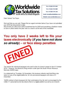 19/11/2019 | WWTS | 0 Comments | Tax Law Newsletters WORLDWIDE TAX SOLUTIONS NEWSLETTER 107 (19 Nov 2019) – INVESTMENT TIPS & SEAFARERS CHECKLIST