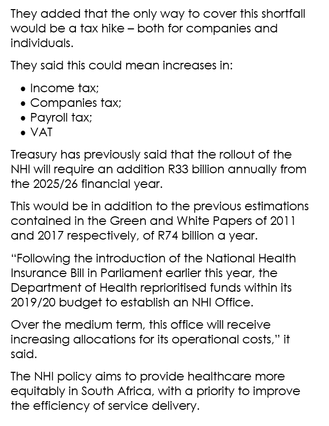 26/11/2019 | WWTS | 0 Comments | Social Media Newsletters Massive tax hike needed to fund South Africa’s NHI