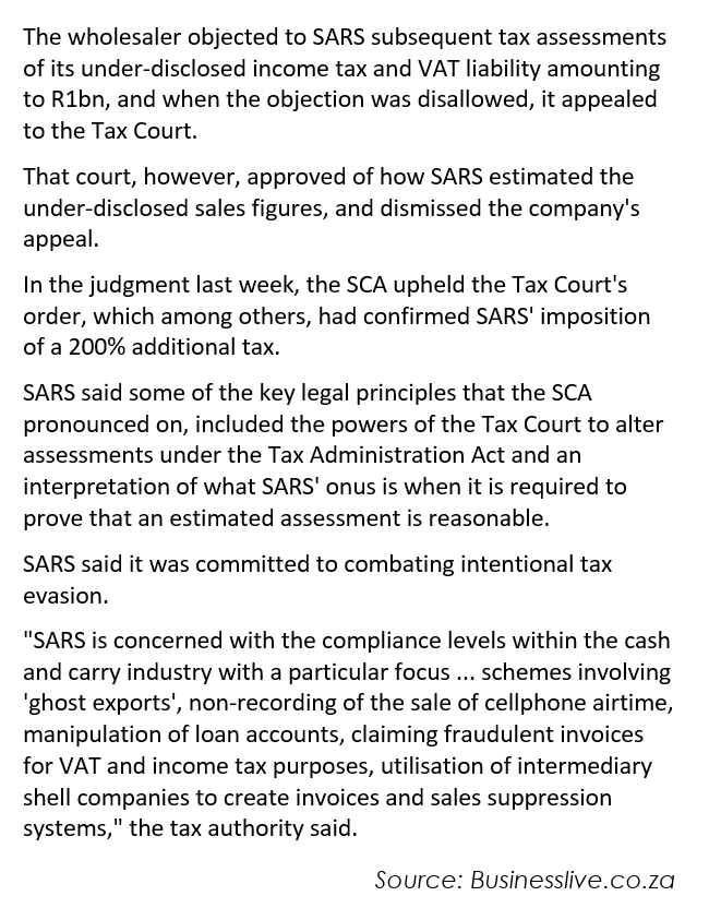 29/11/2019 | WWTS | 0 Comments | Social Media Newsletters Sars scores big as it wins R1bn tax evasion judgment