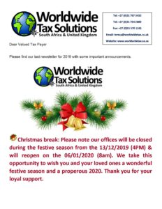 09/12/2019 | WWTS | 0 Comments | Tax Law Newsletters WORLDWIDE TAX SOLUTIONS NEWSLETTER 108 (9 Dec 2019) – FINAL 2019 UPDATES