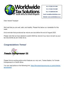 17/08/2020 | WWTS | 0 Comments | Tax Law Newsletters WORLDWIDE TAX SOLUTIONS NEWSLETTER 127 (17 Aug 2020) – SARS UPDATES