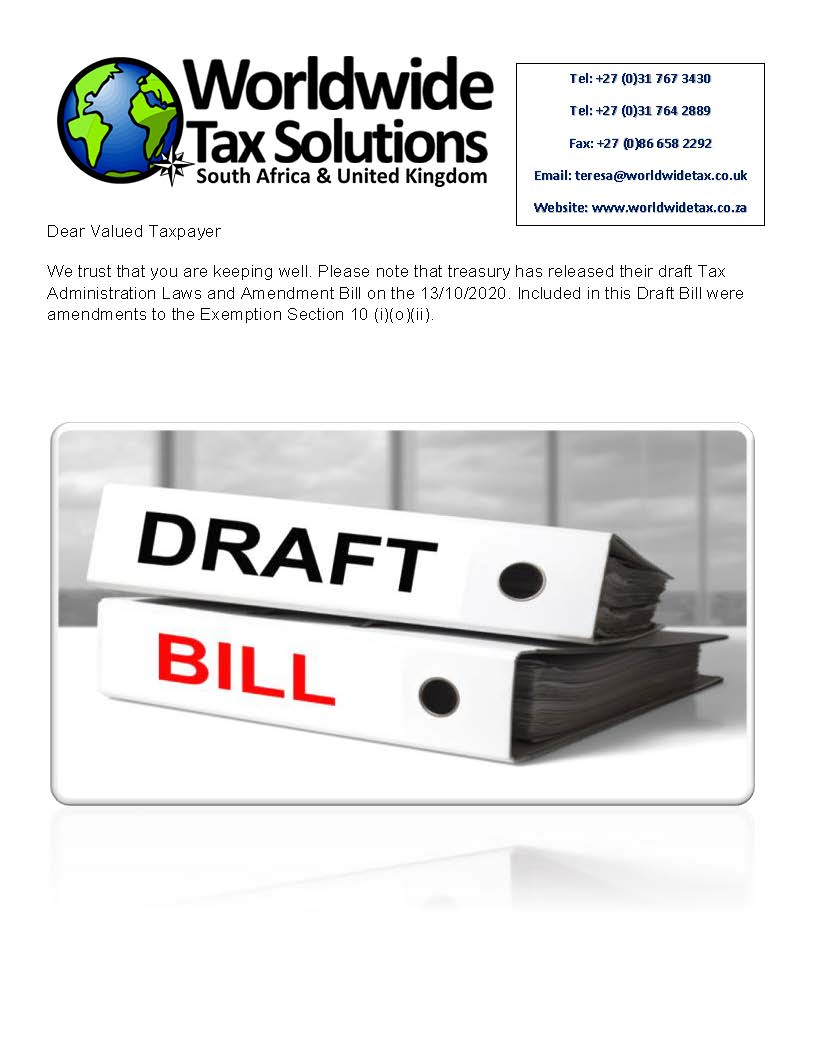 13/10/2020 | WWTS | 0 Comments | Tax Law Newsletters WORLDWIDE TAX SOLUTIONS NEWSLETTER 133 (13 Oct 2020) – Draft Amendment Bill