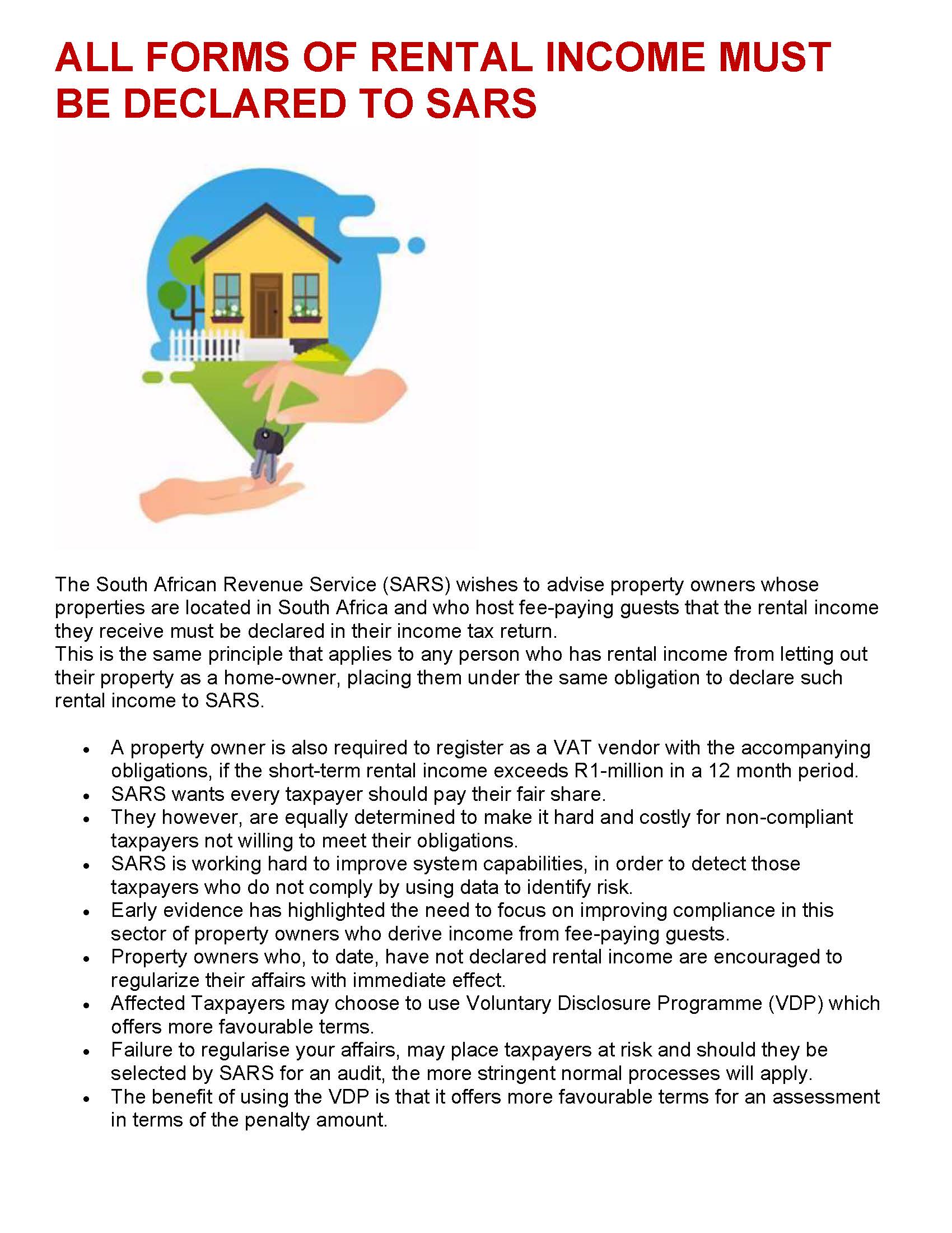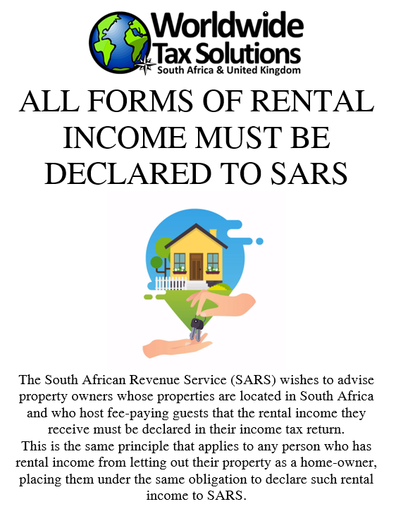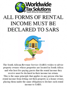 12/03/2021 | WWTS | 0 Comments | Social Media Newsletters ALL FORMS OF RENTAL INCOME MUST BE DECLARED TO SARS