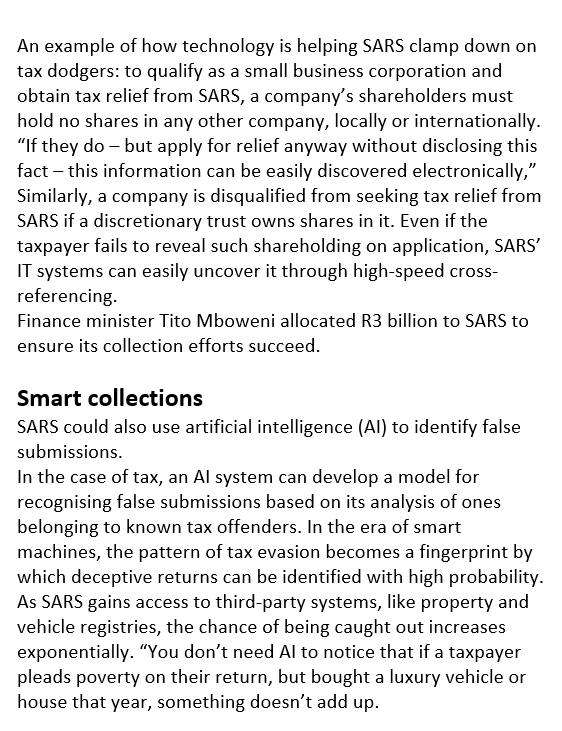 15/03/2021 | WWTS | 0 Comments | Social Media Newsletters How SARS will use new technology to nail tax dodgers