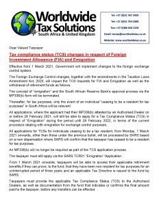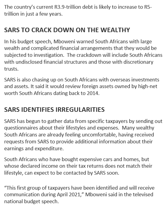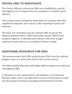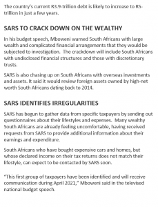 • SARS holding Wealthy Taxpayers Accountable – Especially if they want to leave the Country