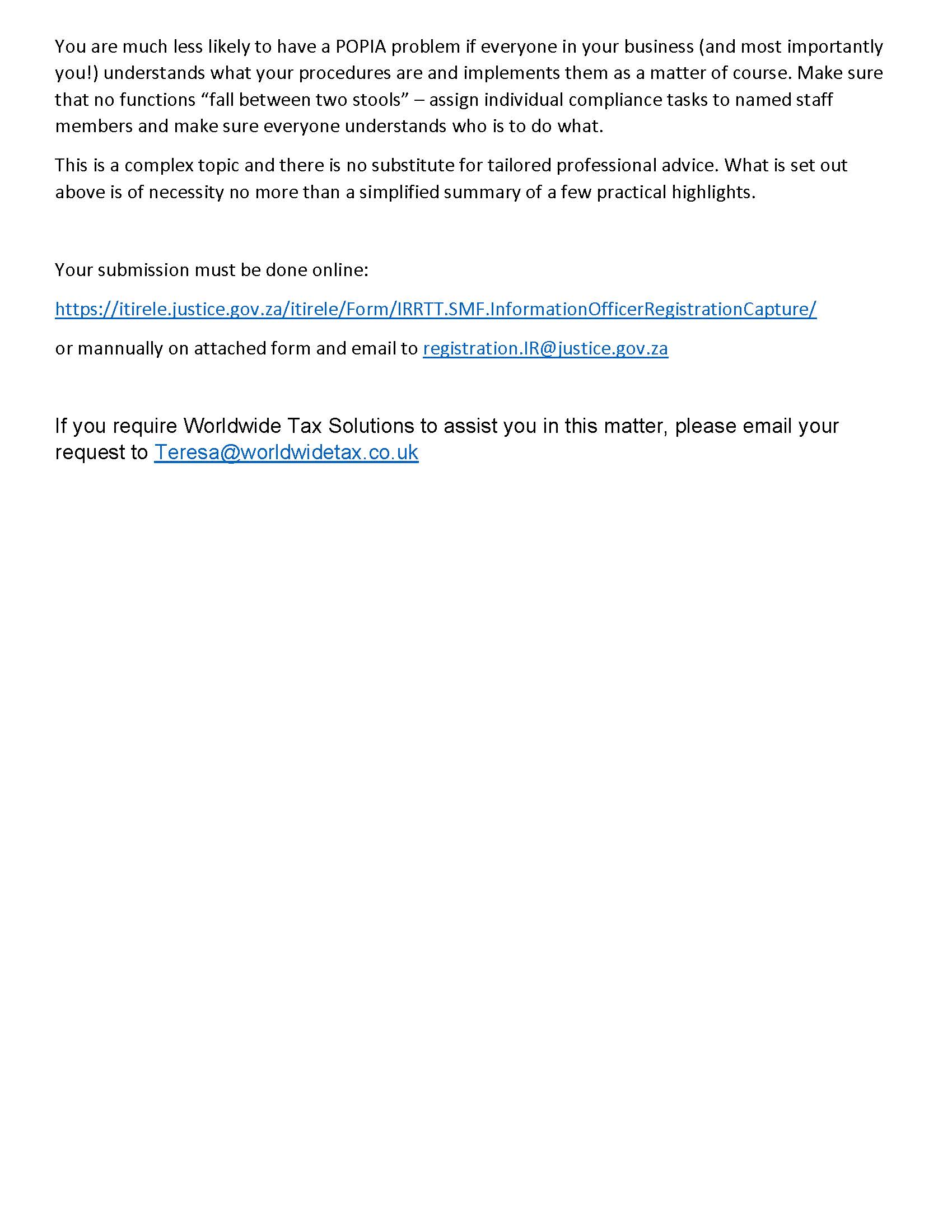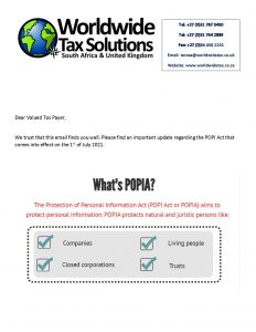 11/06/2021 | WWTS | 0 Comments | Tax Law Newsletters WORLDWIDE TAX SOLUTIONS NEWSLETTER 148 (11 June 2021) – POPI DEADLINE