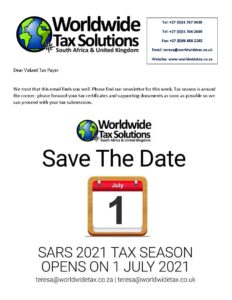 22/06/2021 | WWTS | 0 Comments | Tax Law Newsletters WORLDWIDE TAX SOLUTIONS NEWSLETTER 149 (22 June 2021) – JUNE 2021 TAX SEASON UPDATES