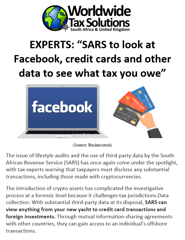 21/10/2021 | WWTS | 0 Comments | Social Media Newsletters SARS TO LOOK AT FACEBOOK AND CREDIT CARDS TO CHECK YOUR TAX