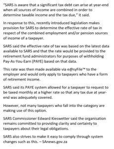 - SARS Scores R15 Billion Pay Day, as SA Workers Dip into Two-Pot Retirement funds.