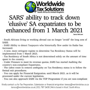 07/01/2021 | WWTS | 0 Comments | Social Media Newsletters SARS sends out notice about offshore assets