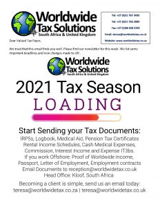 03/06/2021 | WWTS | 0 Comments | Tax Law Newsletters WORLDWIDE TAX SOLUTIONS NEWSLETTER 147 (3 June 2021) – JUNE 2021 SARS UPDATES