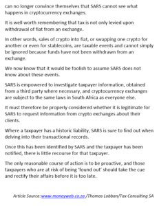 04/06/2021 | WWTS | 0 Comments | Social Media Newsletters SARS puts crypto exchanges under the magnifying glass