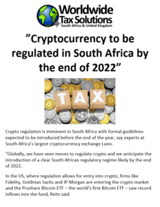 18/01/2022 | WWTS | 0 Comments | Tax Law Newsletters Cryptocurrency to be regulated in South Africa by the end of 2022