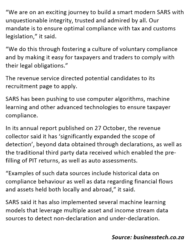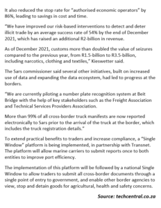 31/01/2022 | WWTS | 0 Comments | Social Media Newsletters SARS is scaling up tech investments at South Africa’s borders.