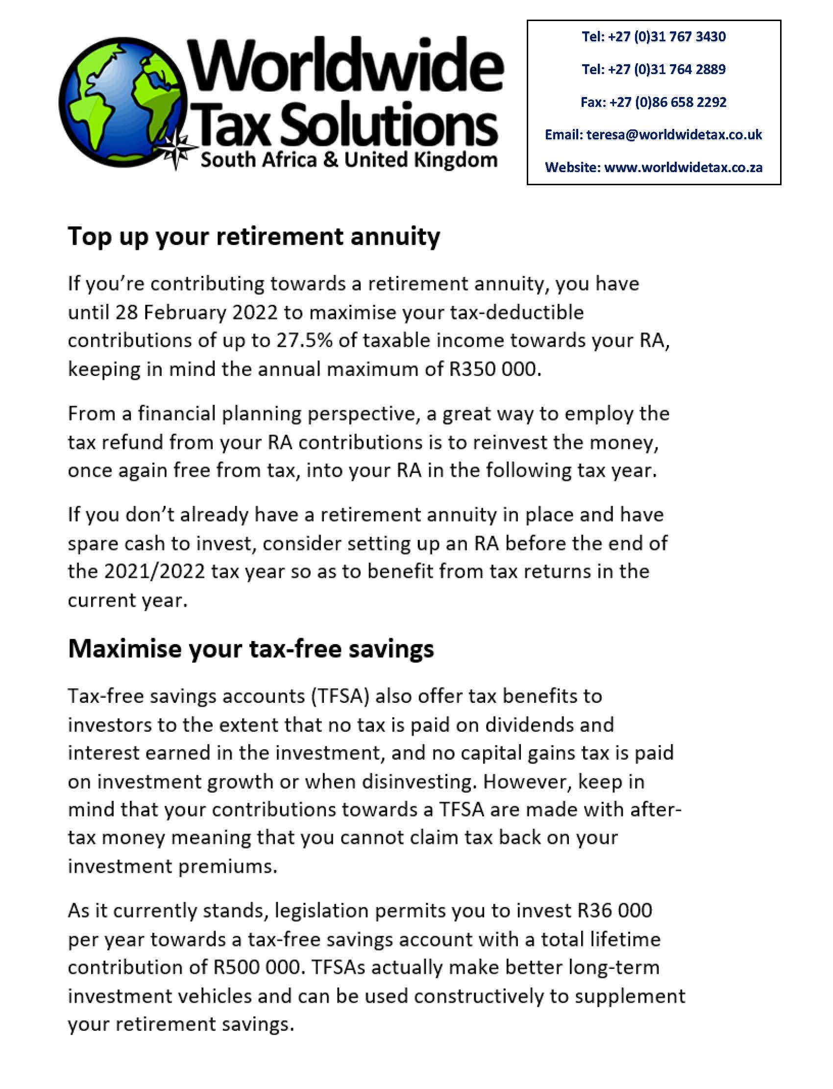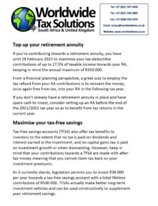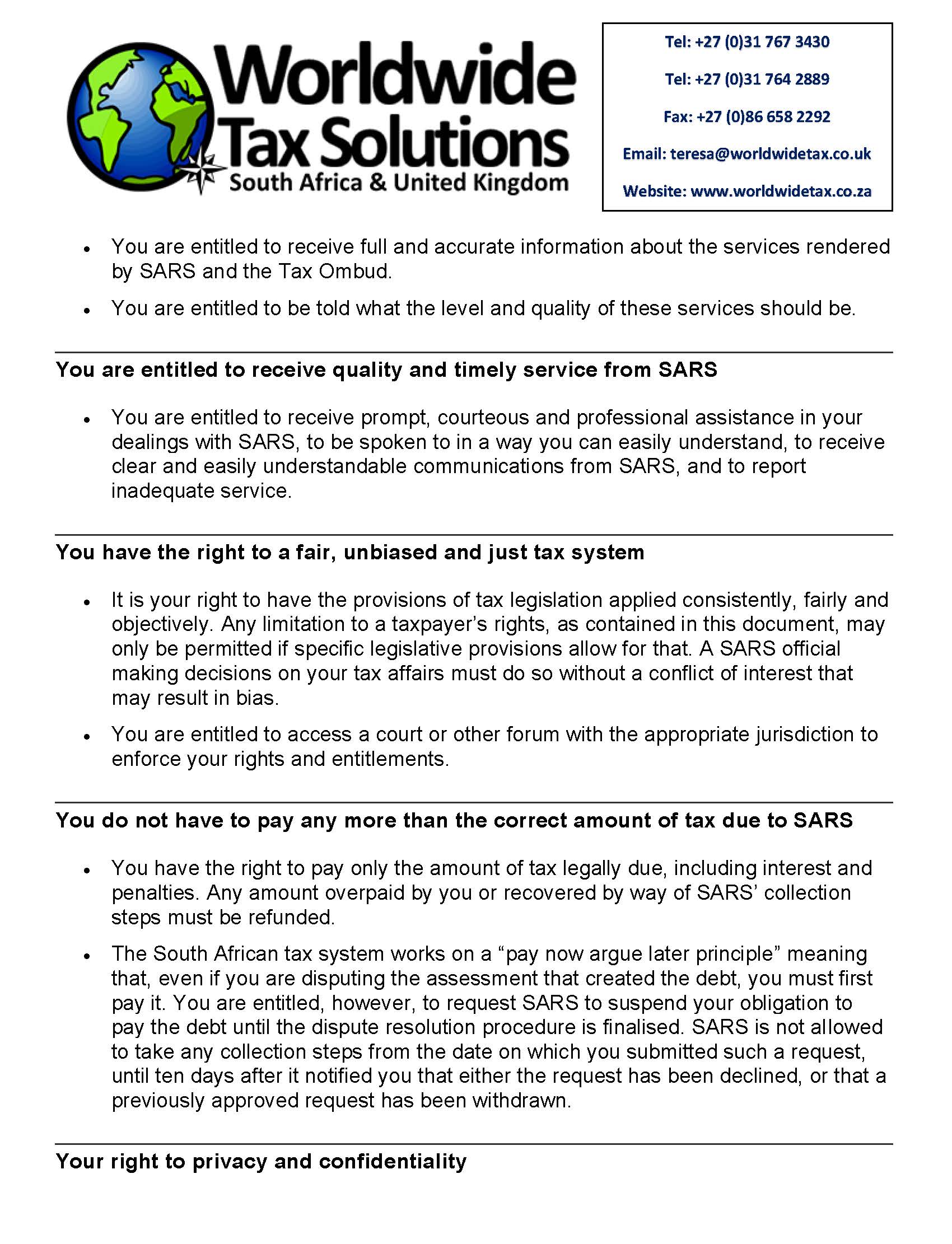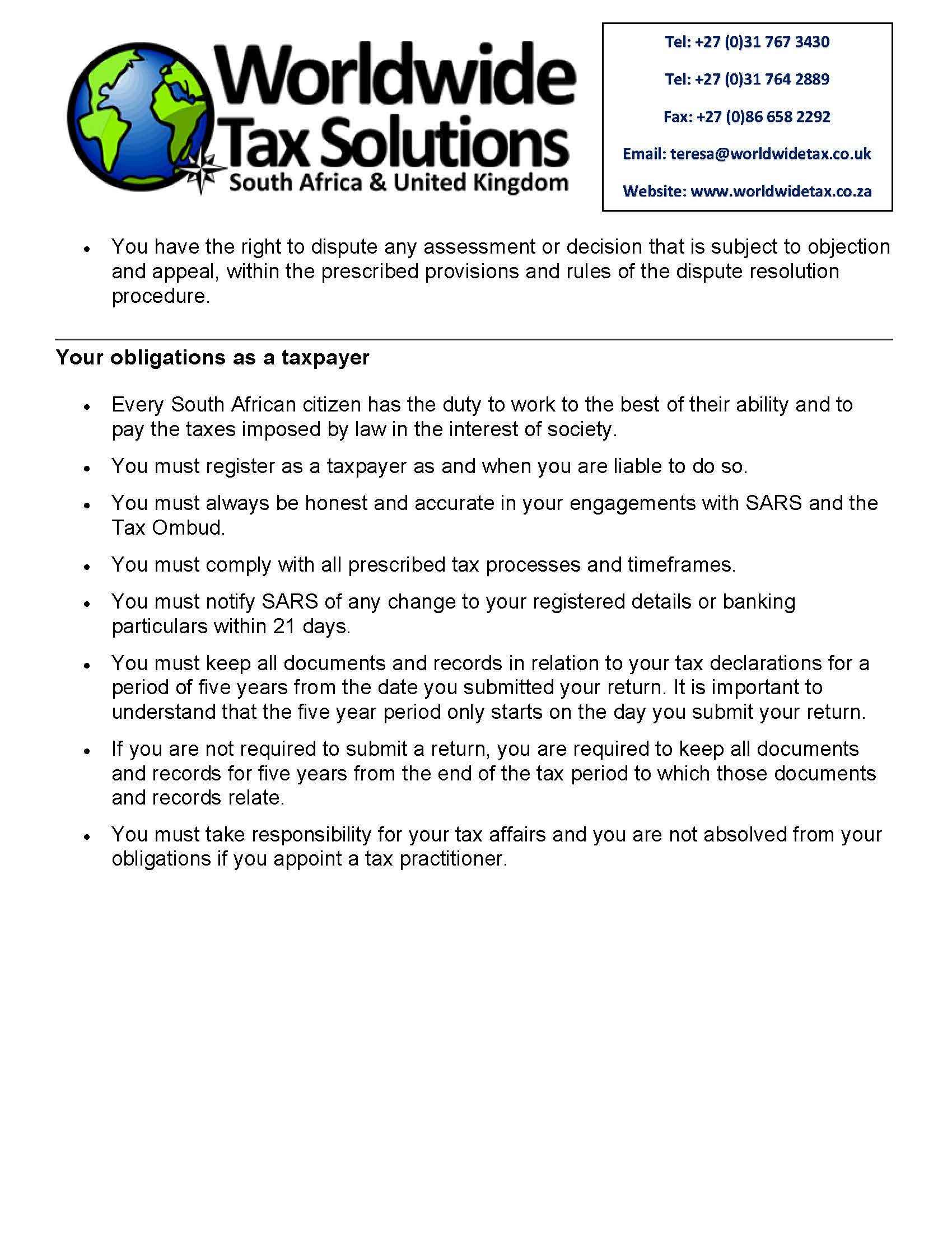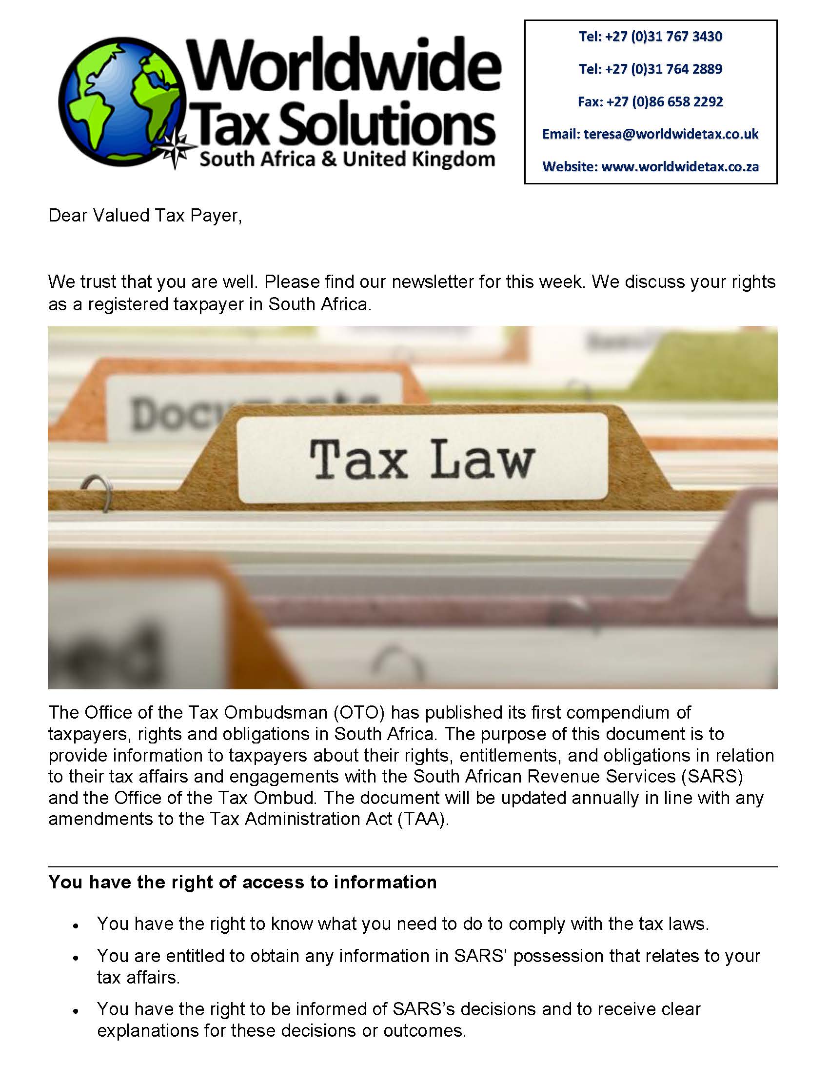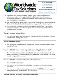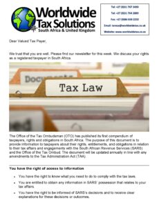 03/02/2022 | WWTS | 0 Comments | Tax Law Newsletters WORLDWIDE TAX SOLUTIONS NEWSLETTER 157 (3 Feb 2022) – TAXPAYER’S RIGHTS IN SA