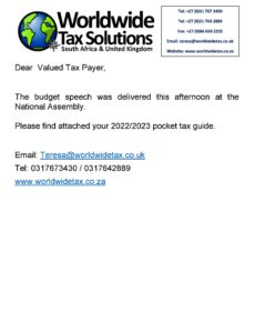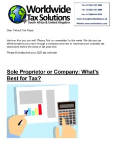 23/02/2022 | WWTS | 0 Comments | Tax Law Newsletters Worldwide Tax Solutions (23 Feb 2023) – Tax Guide 2023 Tax Year