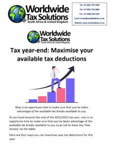 14/02/2022 | WWTS | 0 Comments | Tax Law Newsletters WORLDWIDE TAX SOLUTIONS NEWSLETTER 158 (14 Feb 2022) – Maximise your Tax Deductions