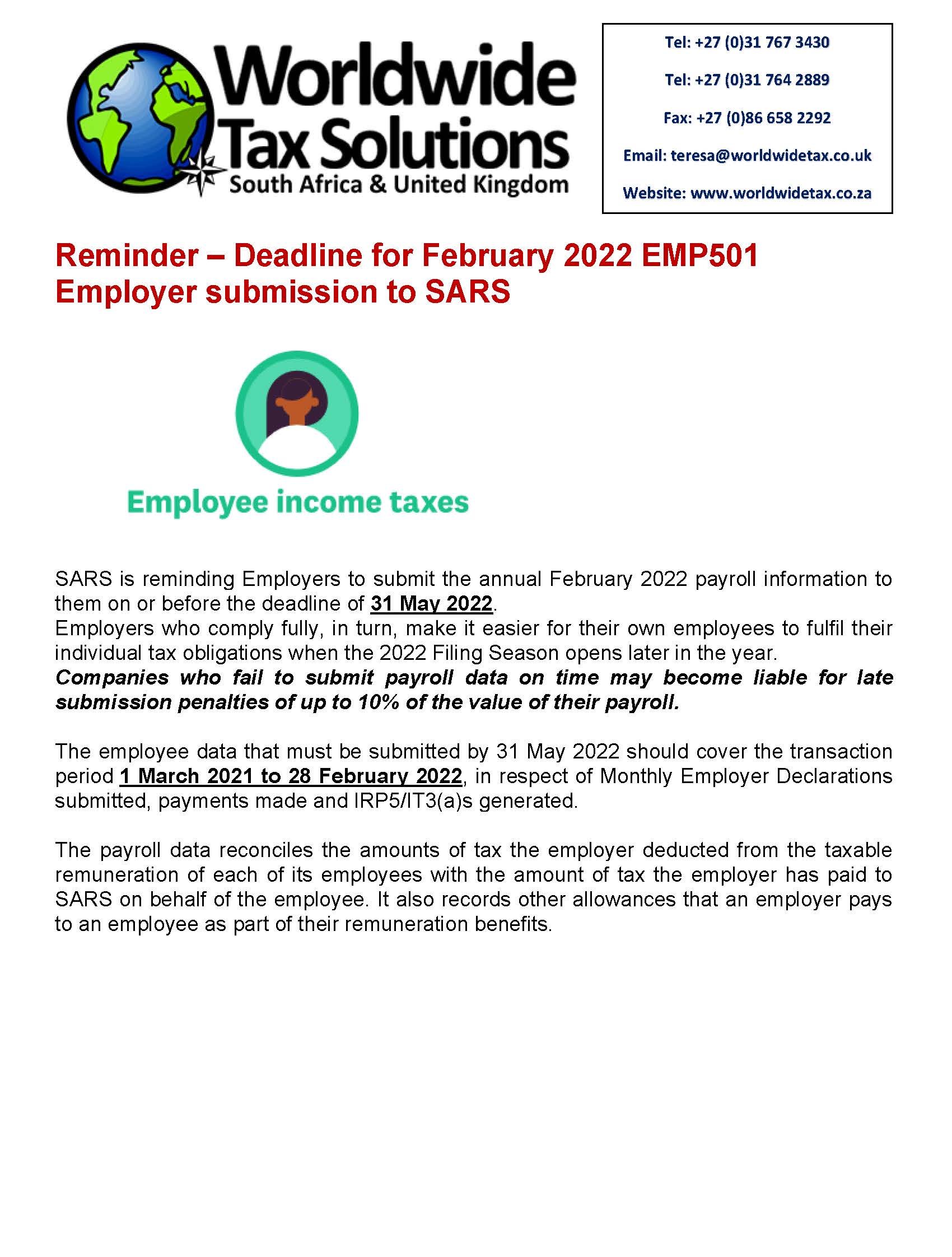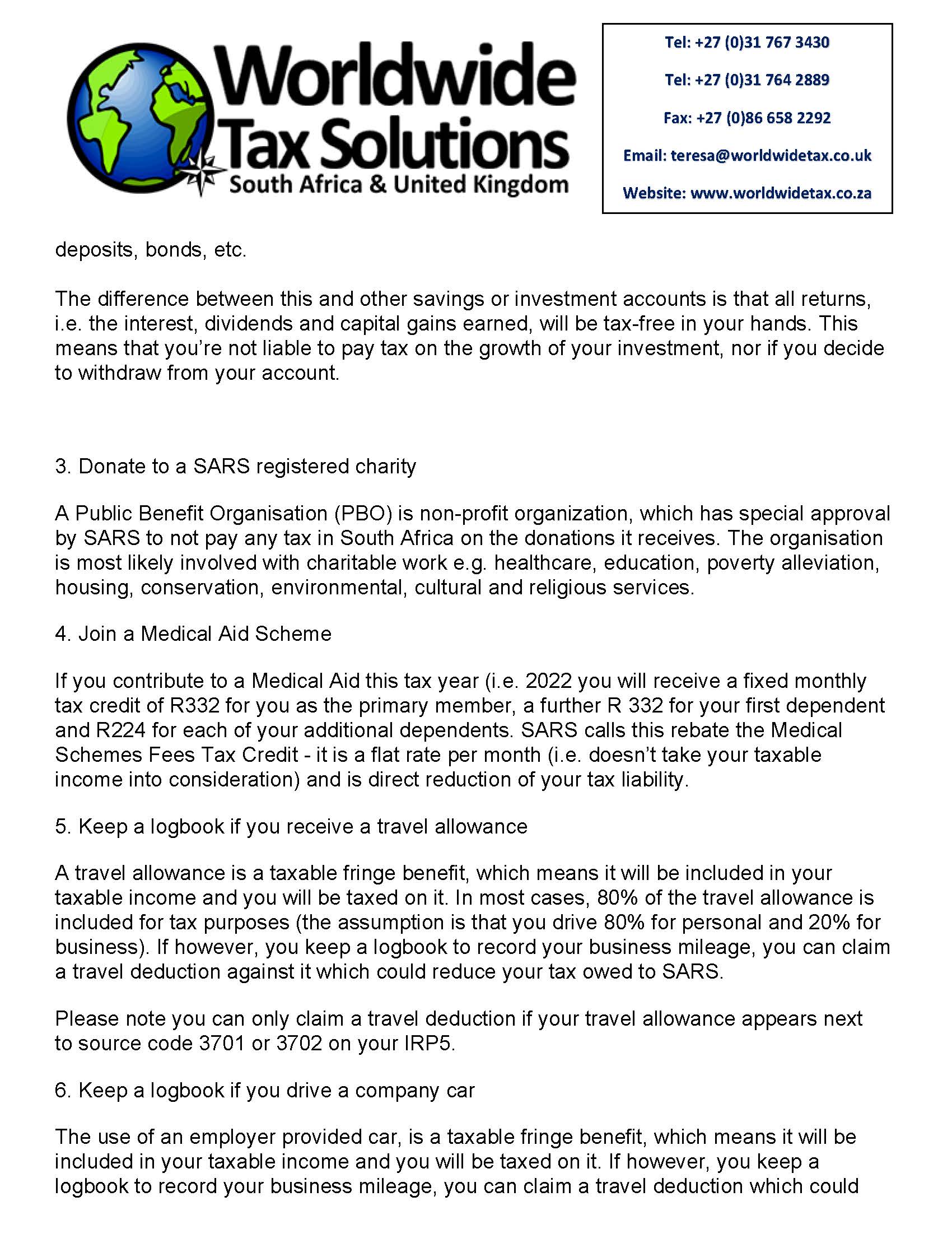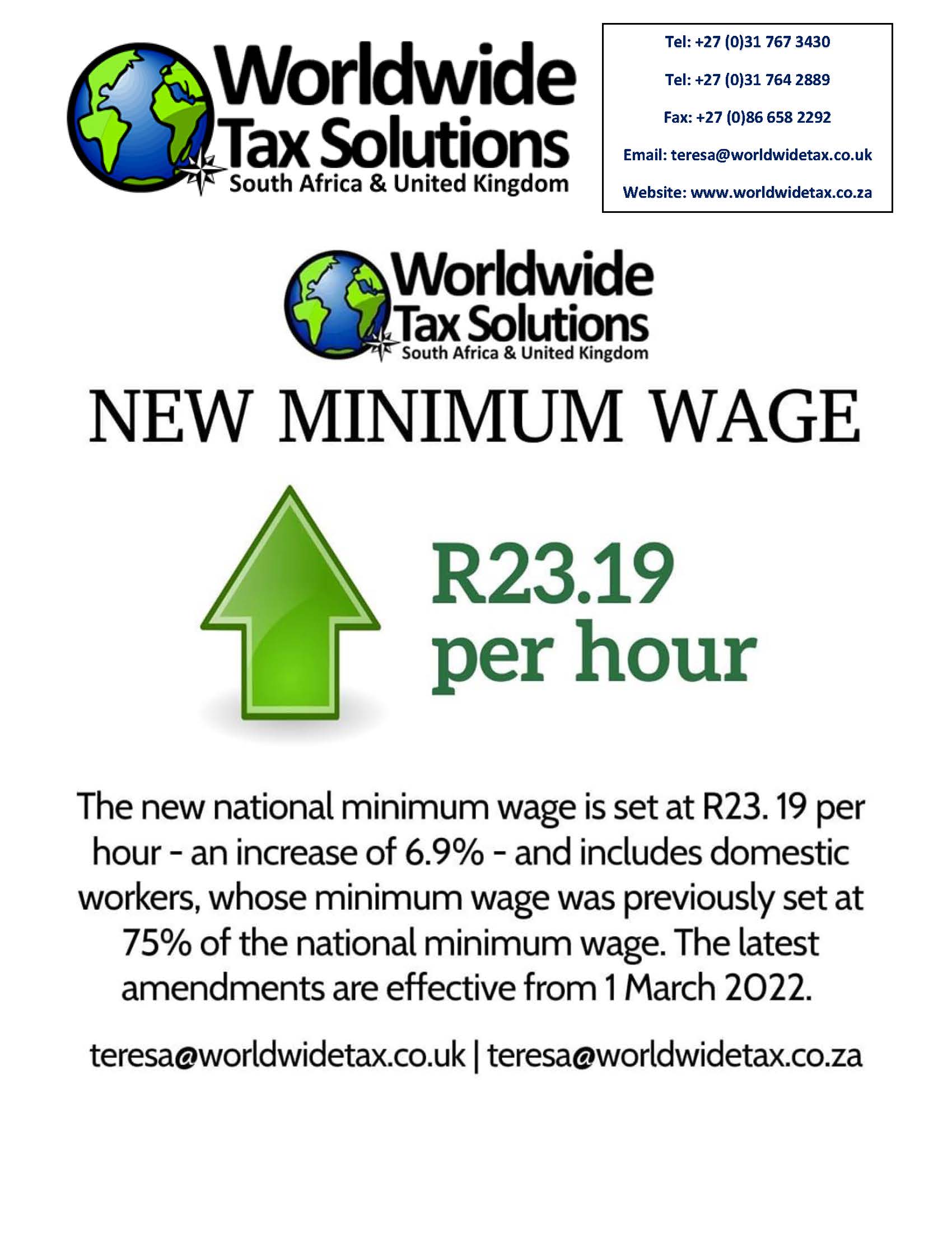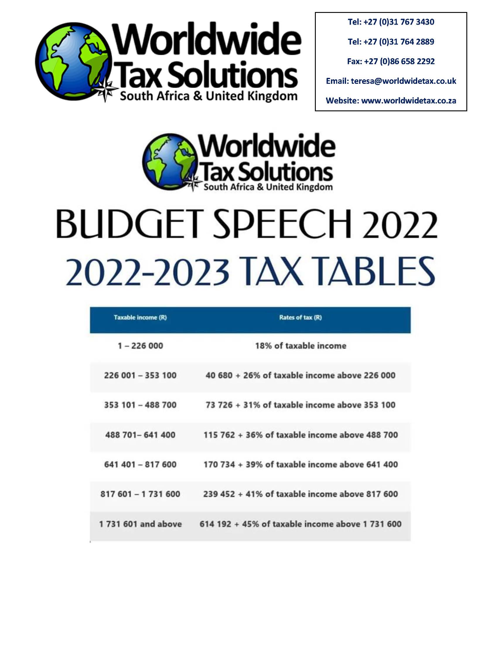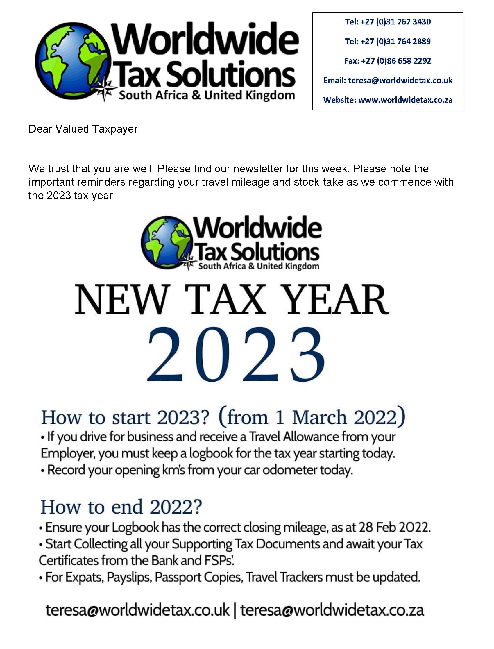 Worldwide Tax Solutions Newsletter 157 (08 Mar 2022) – 2023 Tax Year Changes