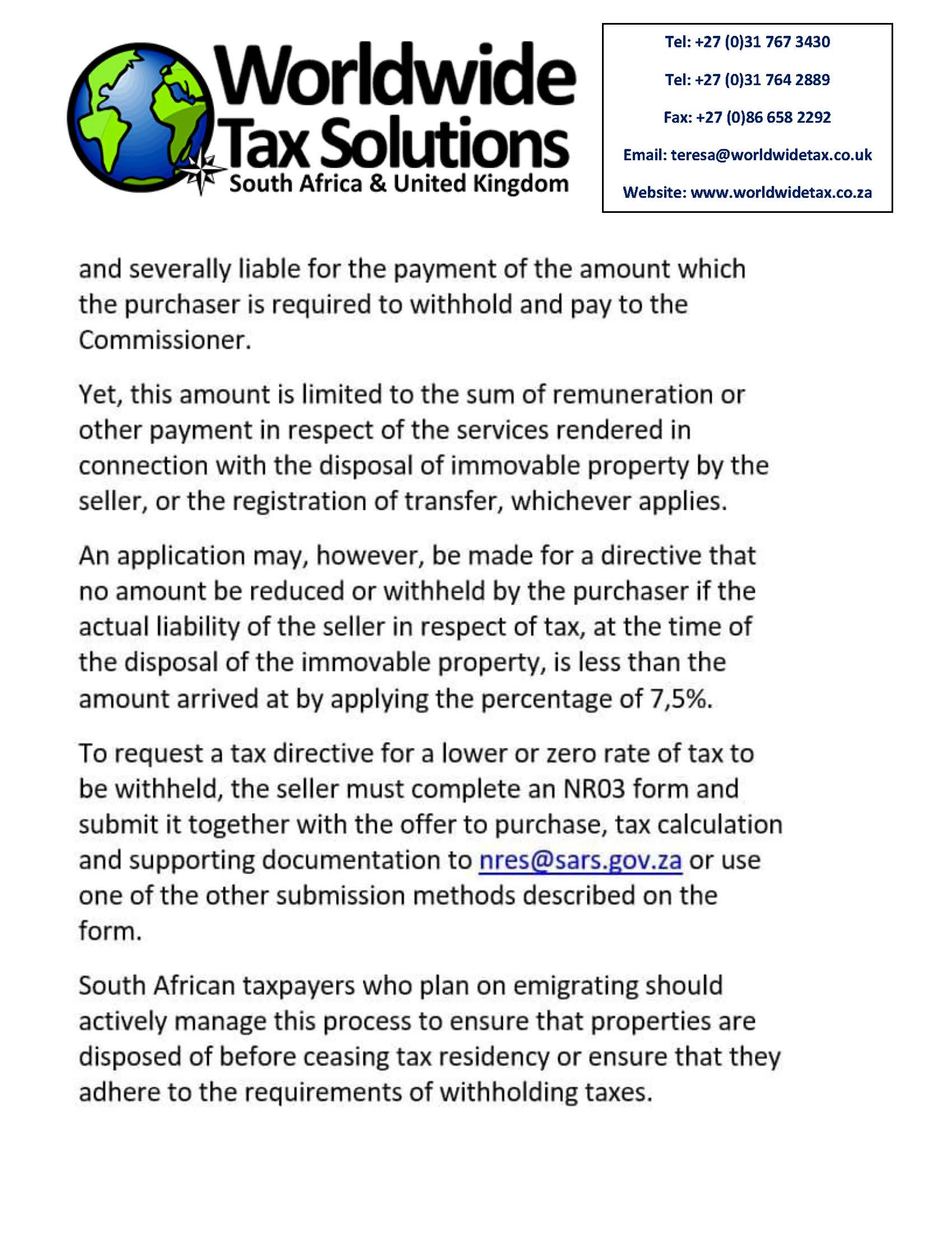 - SARS holding Wealthy Taxpayers Accountable – Especially if they want to leave the Country