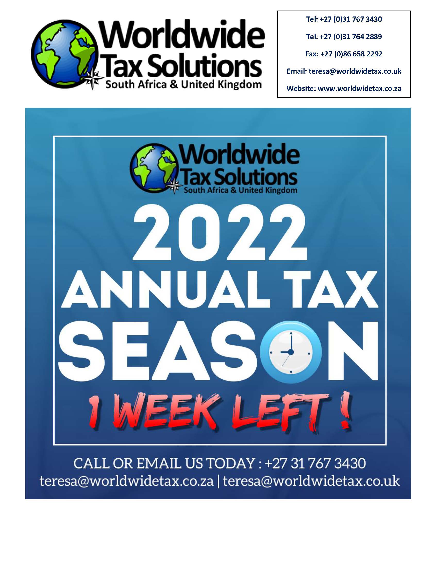27/06/2022 | WWTS | 0 Comments | Tax Law Newsletters Worldwide Tax Solutions Newsletter 167 (27 Jun 2022) – Foreign National Working in SA and Your Part-Time Business